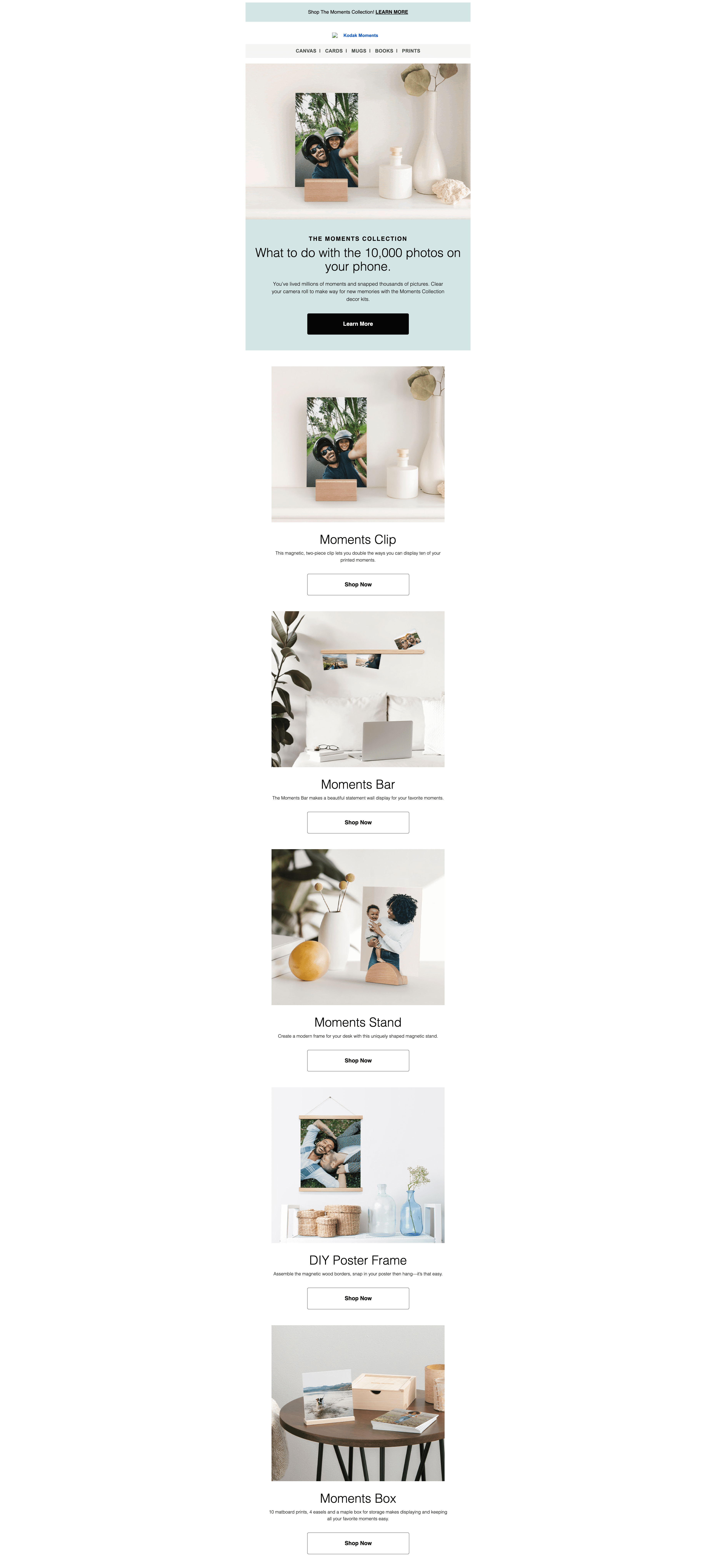 This is one of my favorite projects that I've done for Kodak Moments. The objective was to launch a brand-new line of modern, minimalistic, multi-photo products to generate a new, younger customer segment.